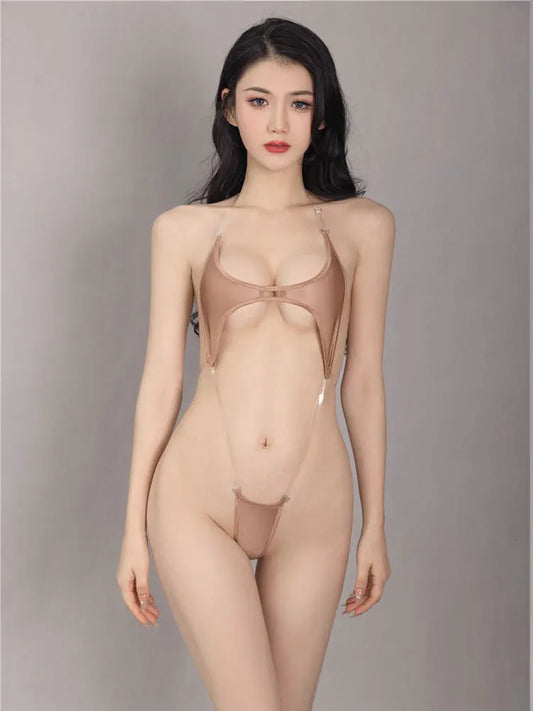 Sexy One-Piece Lingerie Bodysuit Women Bra Set Perspective Rhinestone Underwear Transparent Open Sexy Erotic Lingerie Set