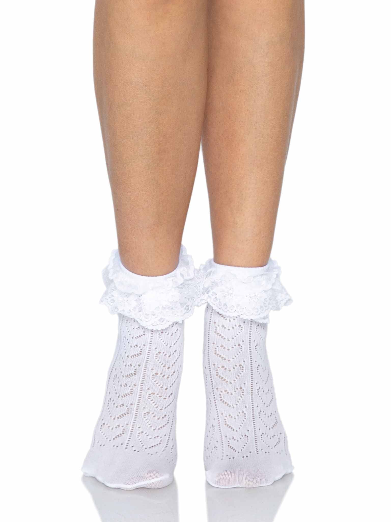You're sure to feel irresistibly sweet in the Lei Lace Ankle Socks by Leg Avenue. Featuring a beautiful crochet pattern with angelic heart lace at the ruffle, this is an elevated classic you need in your collection. Truly the perfect pair of ankle socks!
