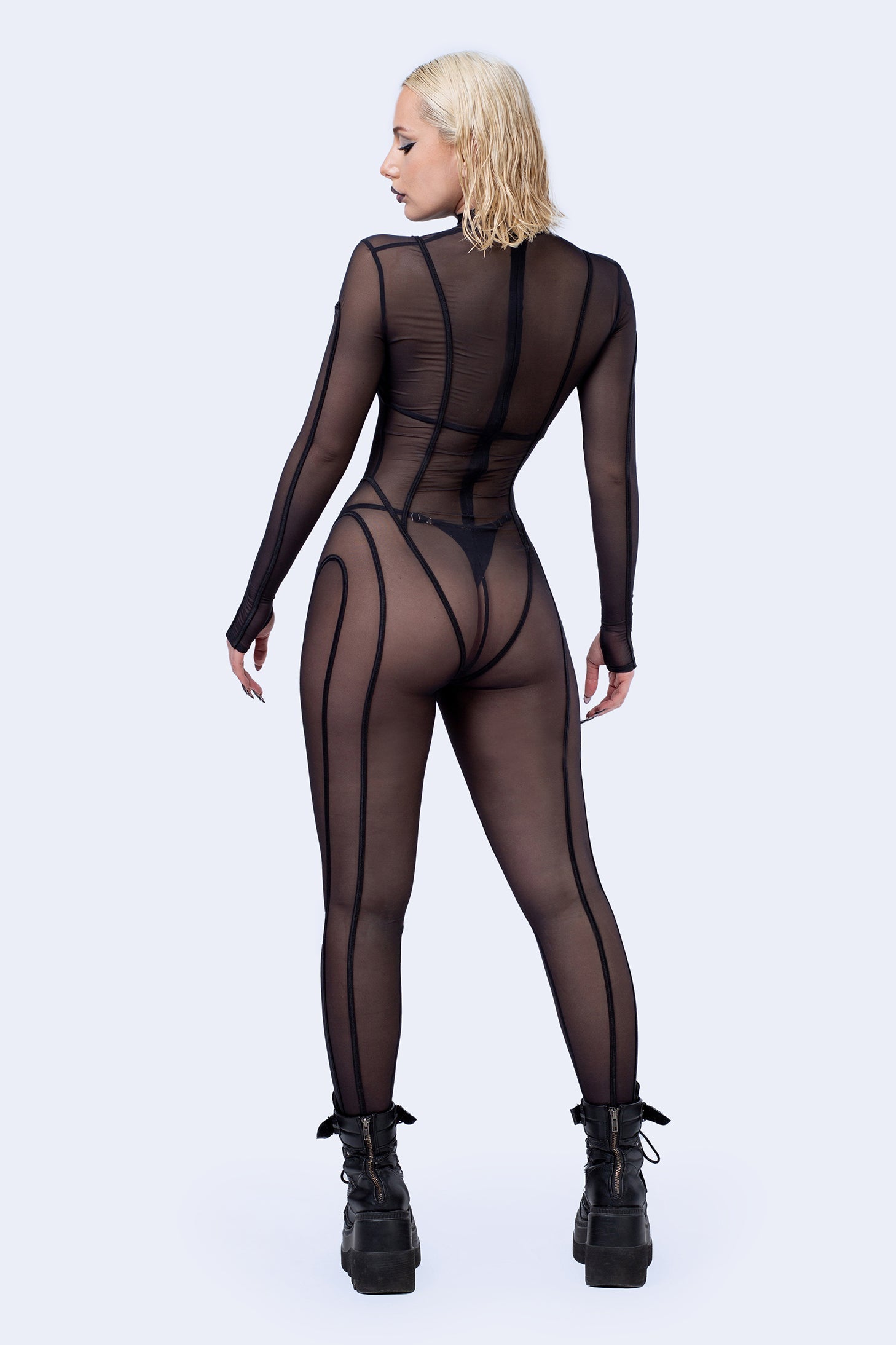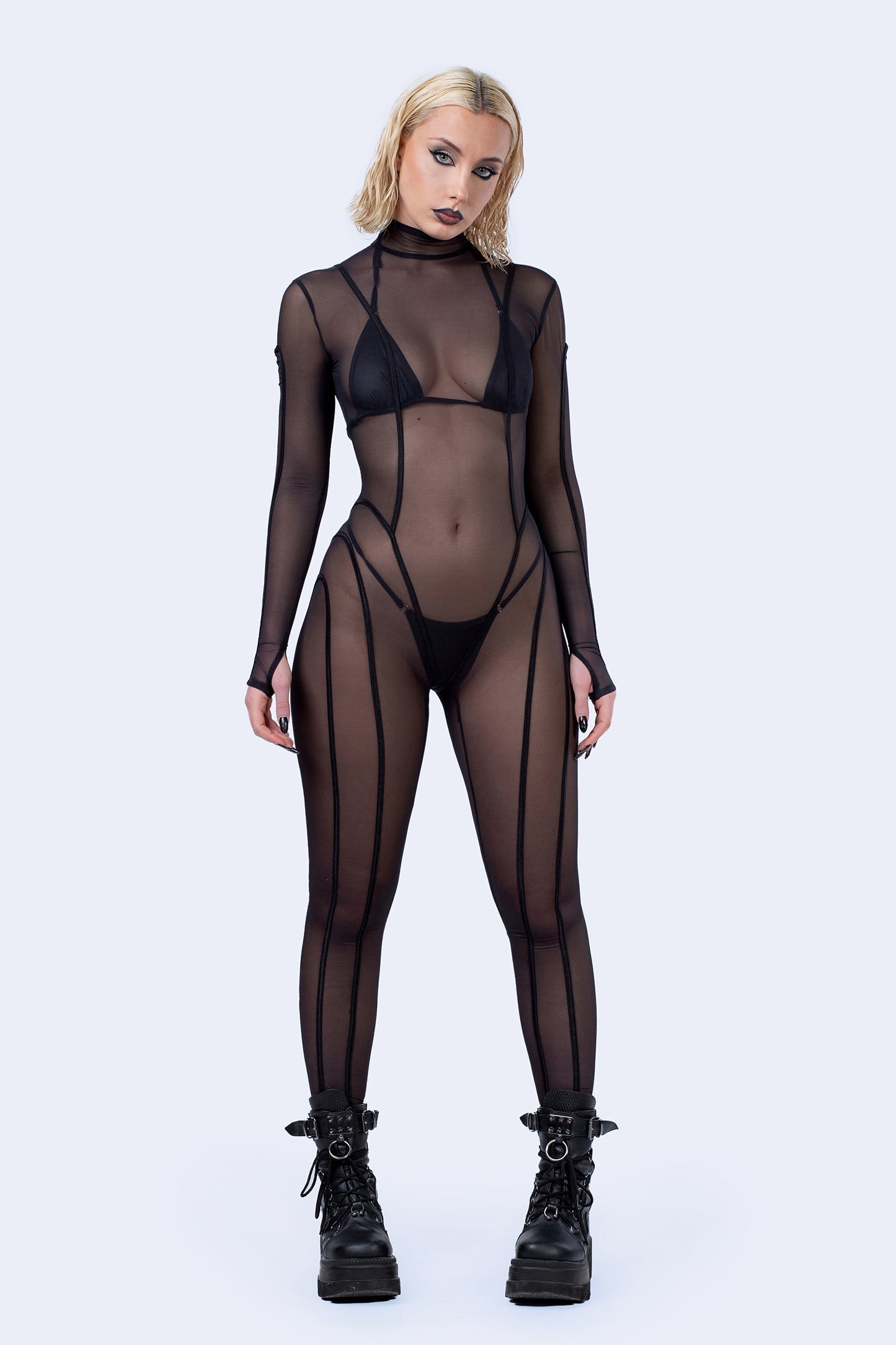 For a polished, sophisticated look, try out the After Dark mesh costume. This gorgeous costume features exposed seams, strategically placed to elongate and slim the figure, soft breathable mesh and long sleeves.