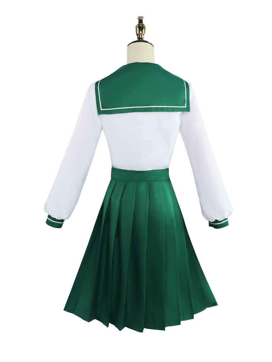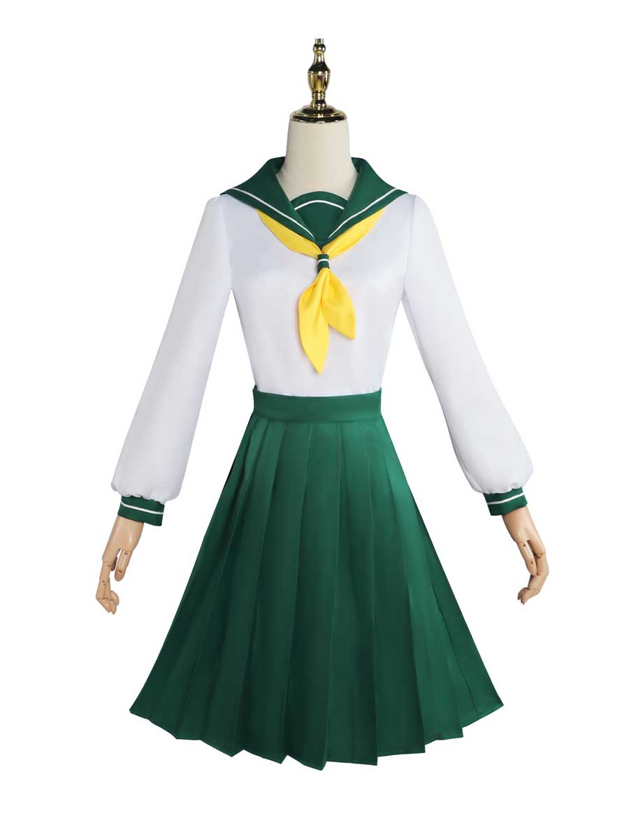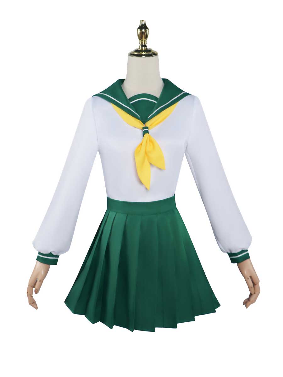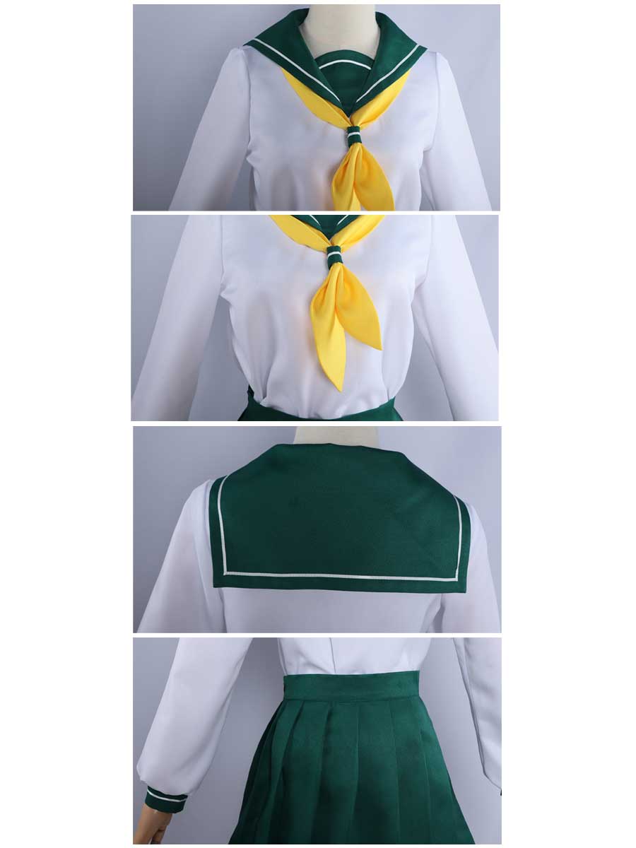 Design: Anime Kagome-Inspired Costume featuring a white polo shirt, long sleeve, a bigger sailor neckline, a front red necktie accents, for a great cosplay costume look. Mini skirt featuring pleated hemline, will make you sexy, cute and attractive.