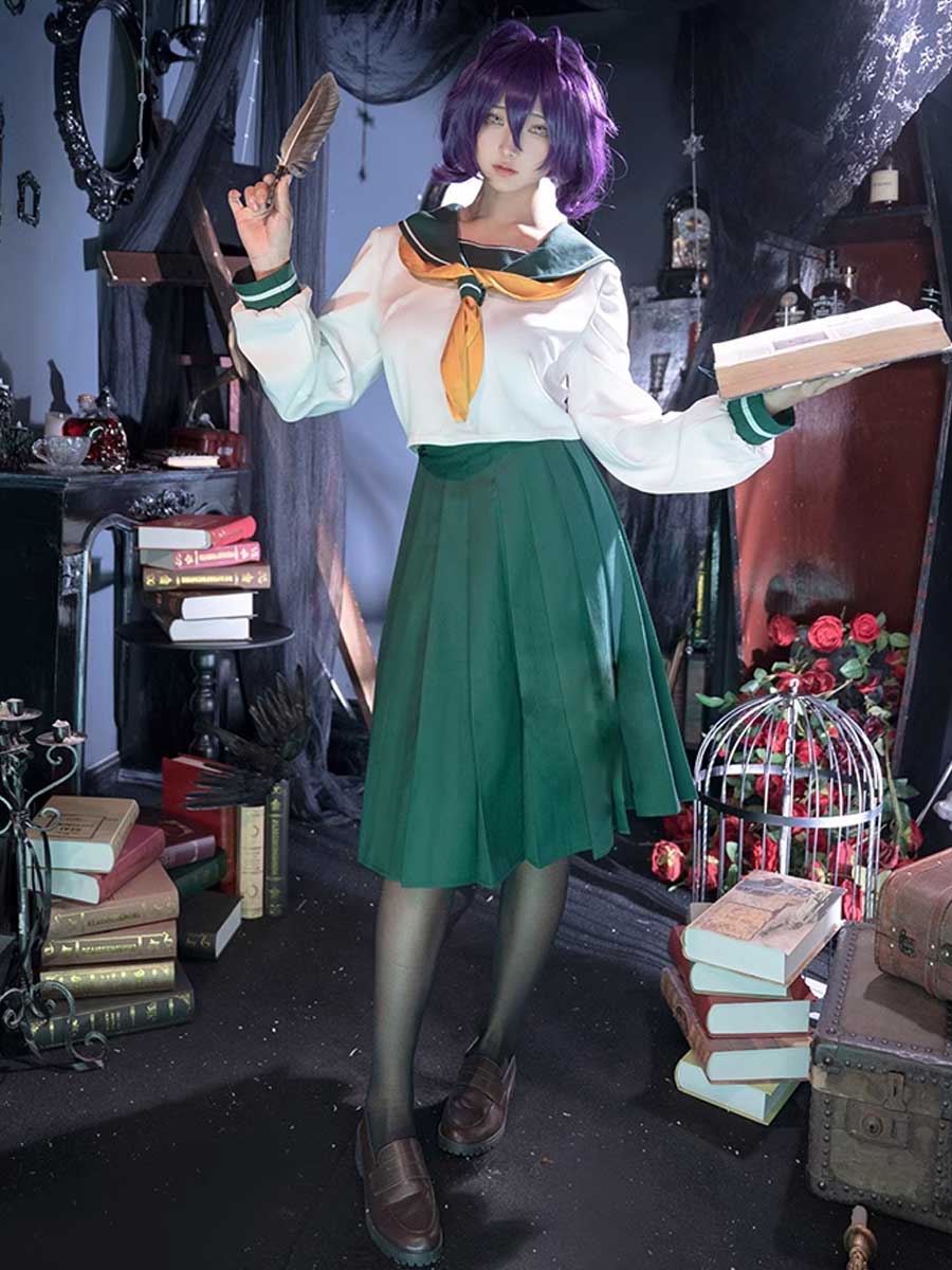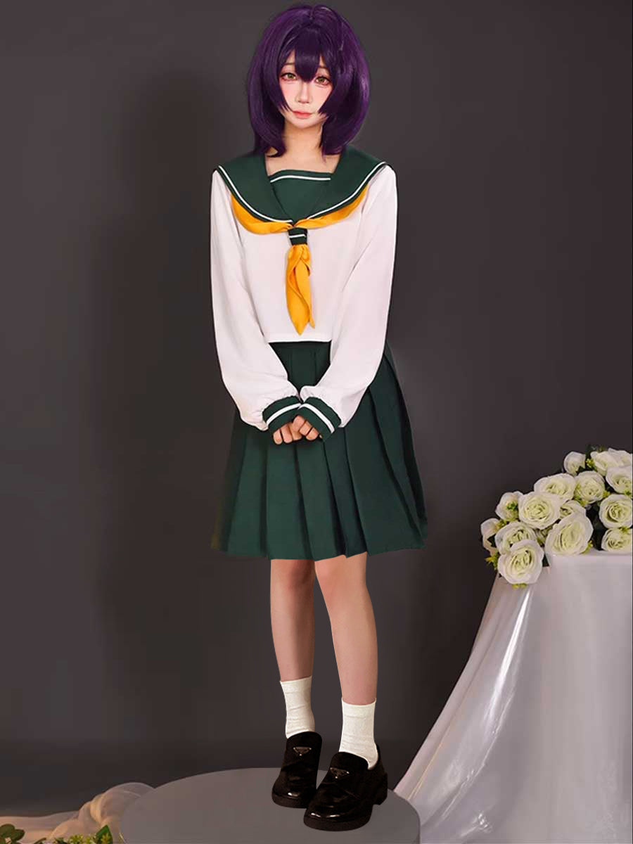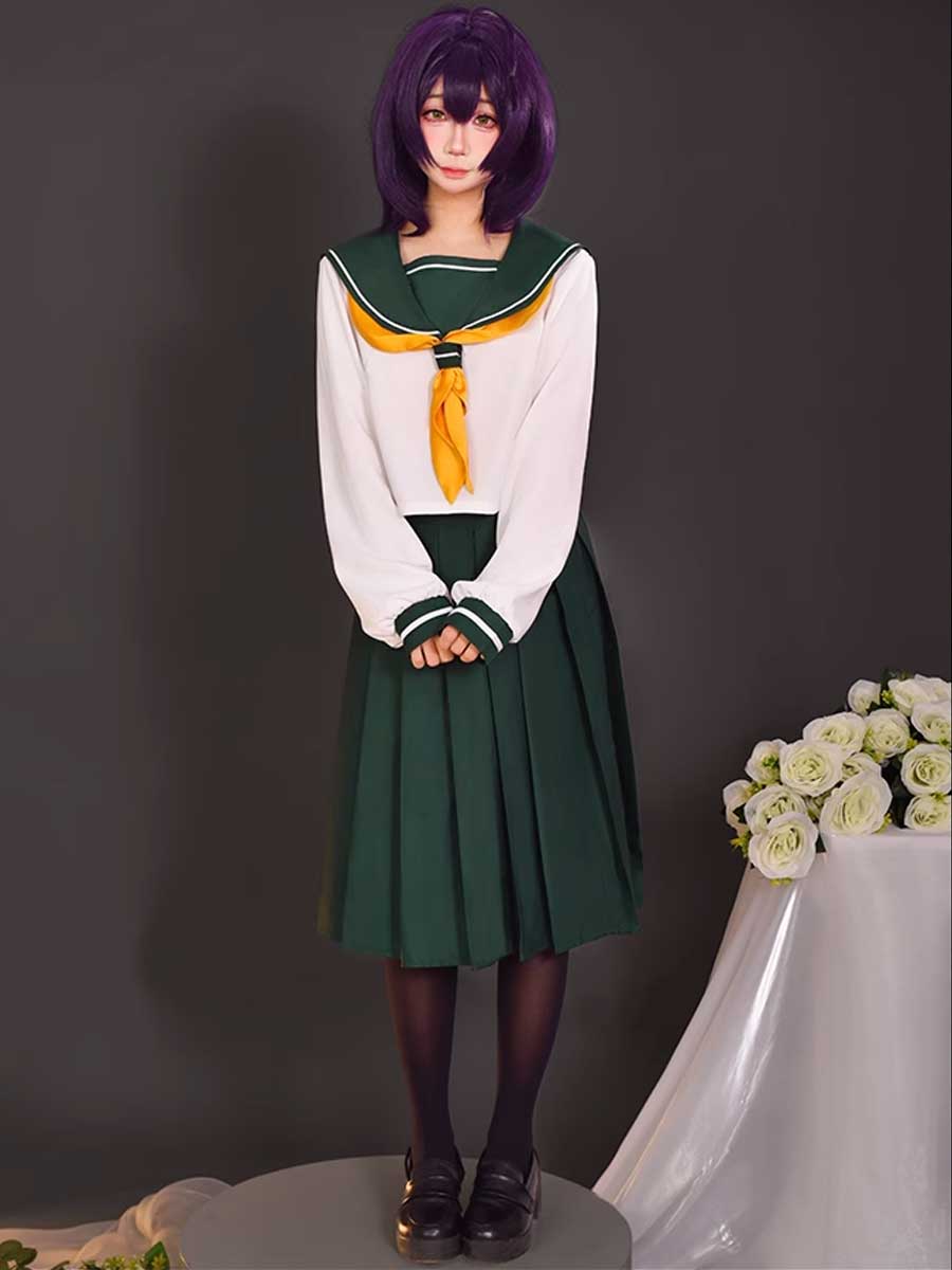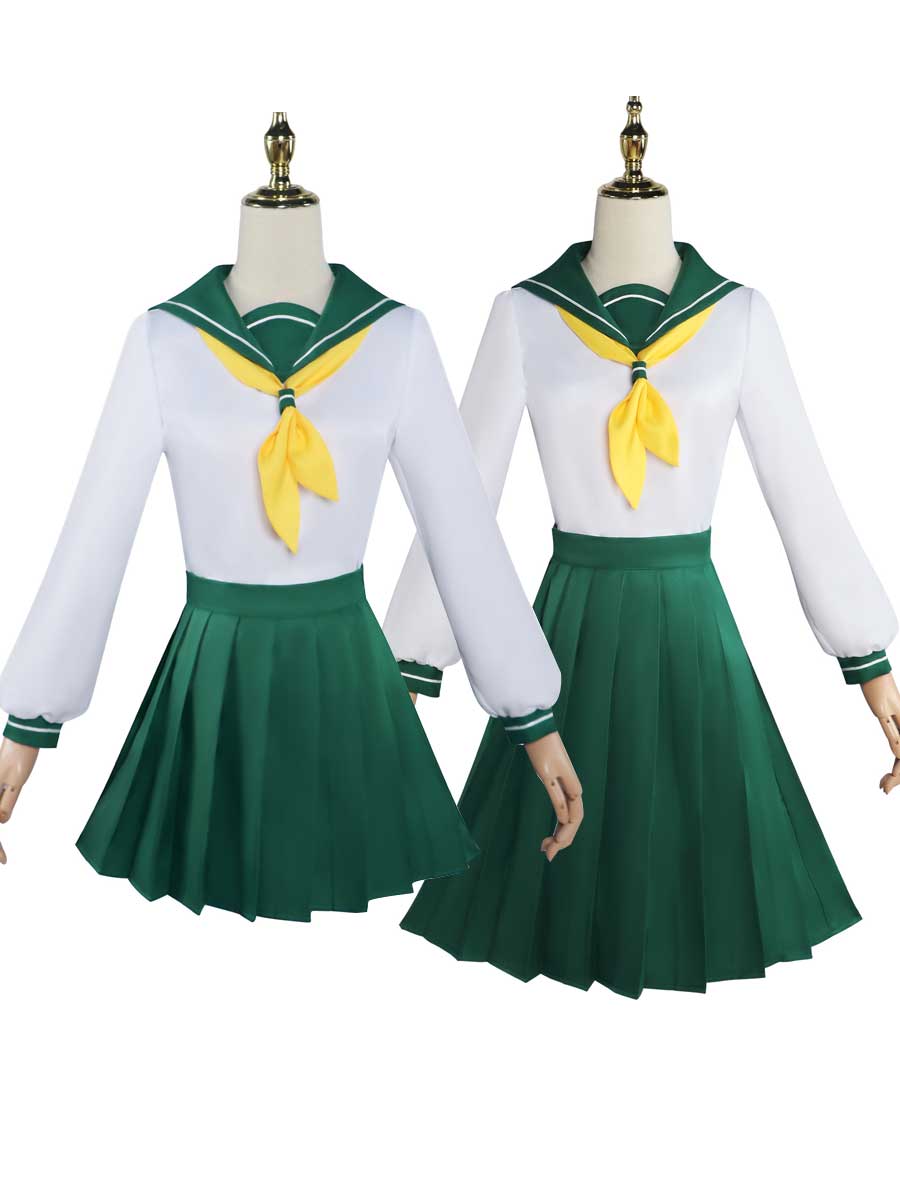 Design: Anime Kagome-Inspired Costume featuring a white polo shirt, long sleeve, a bigger sailor neckline, a front red necktie accents, for a great cosplay costume look. Mini skirt featuring pleated hemline, will make you sexy, cute and attractive.
