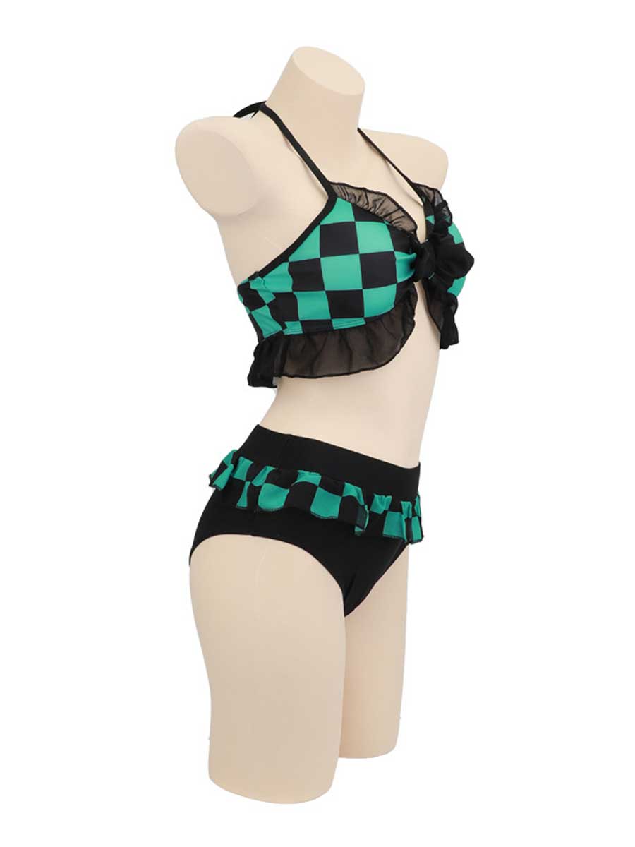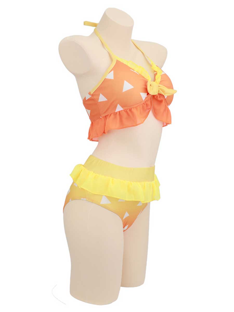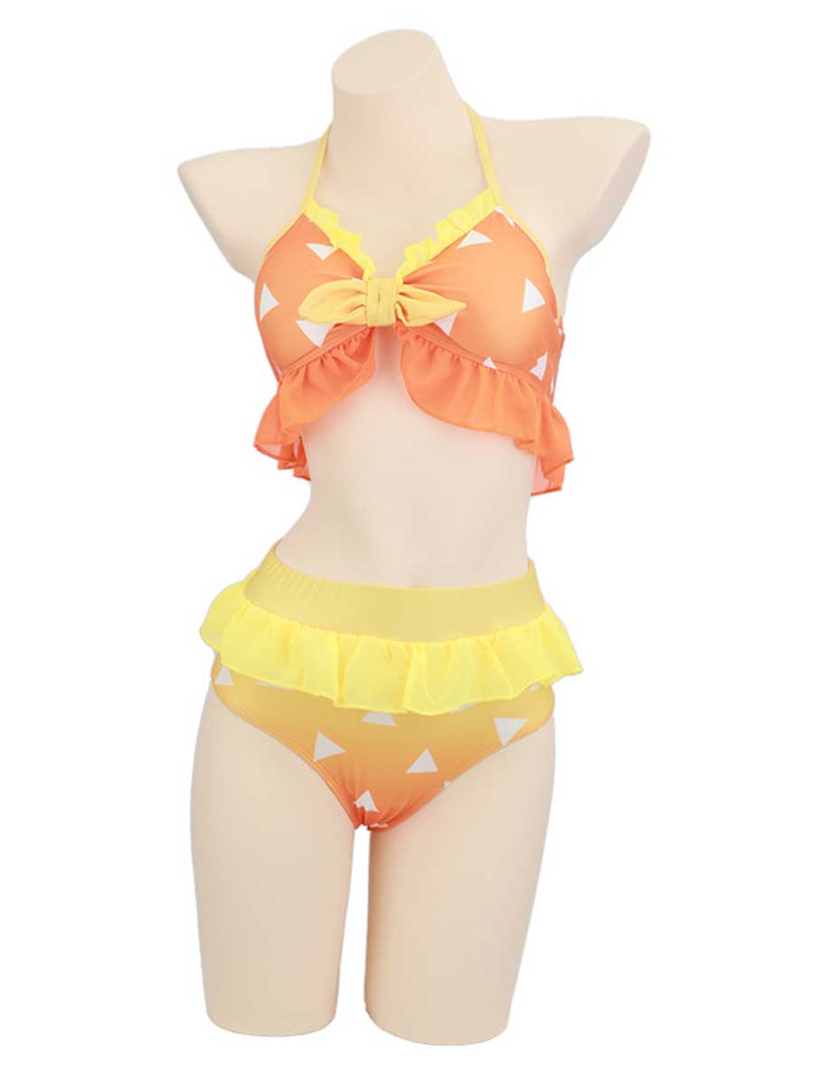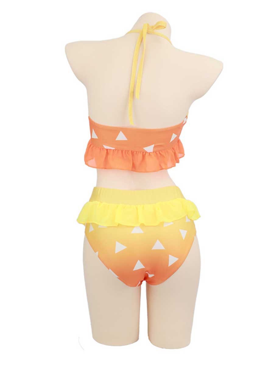 Design: This japanese Anime 2 Piece Bikini Set features bikini top with padded cups, triangle cups with a tie back closure, and matching high waisted bottoms with a cheeky cut back.