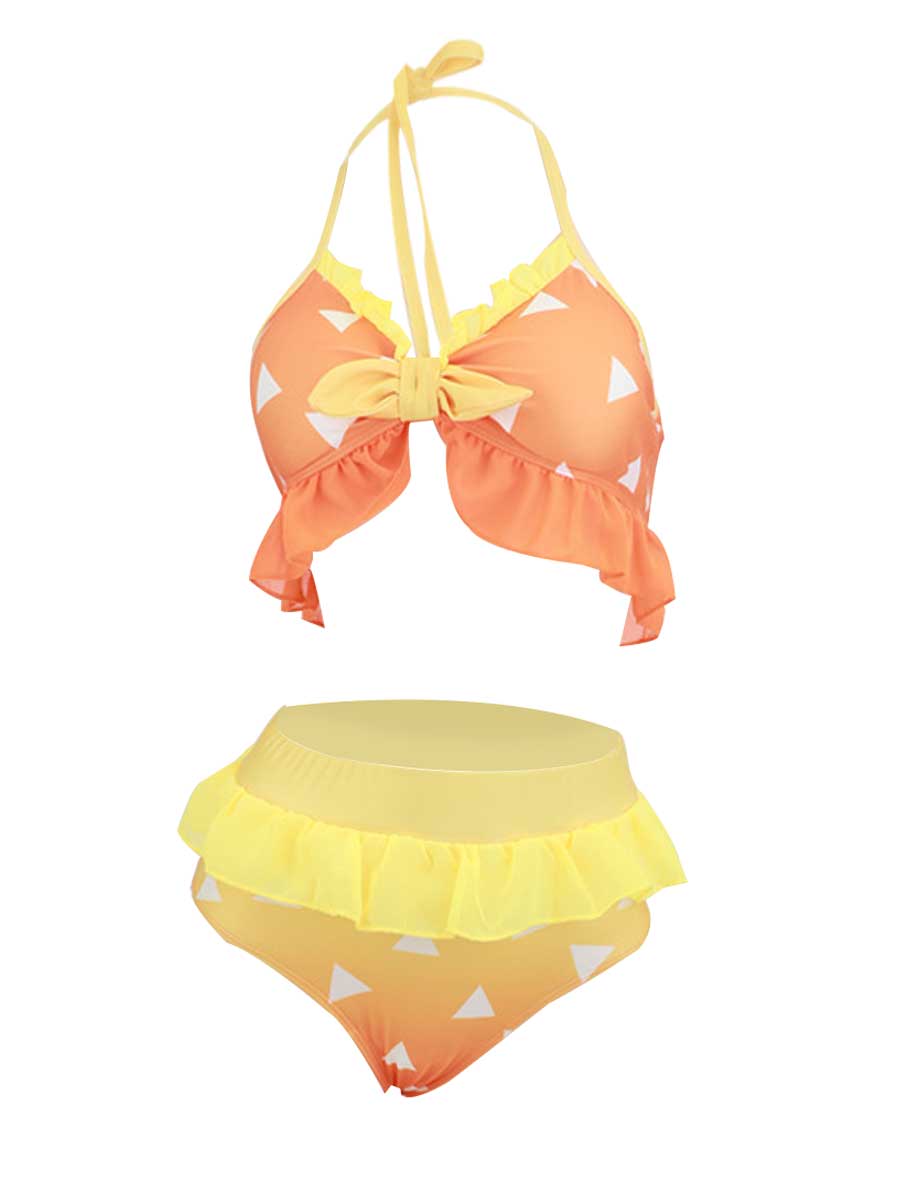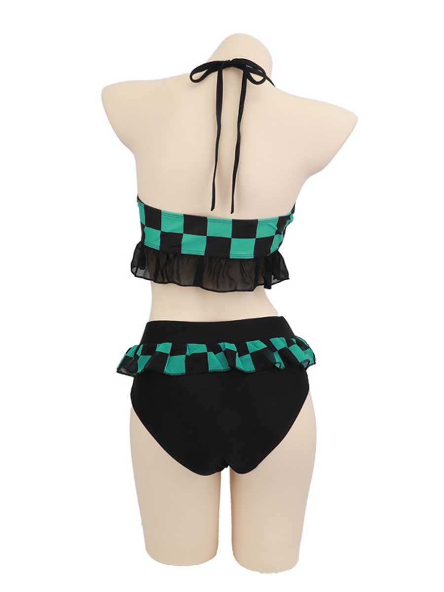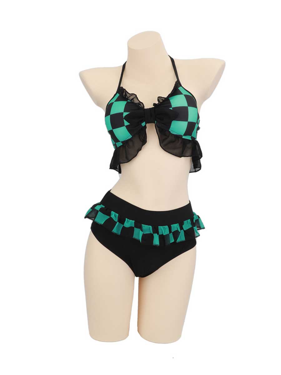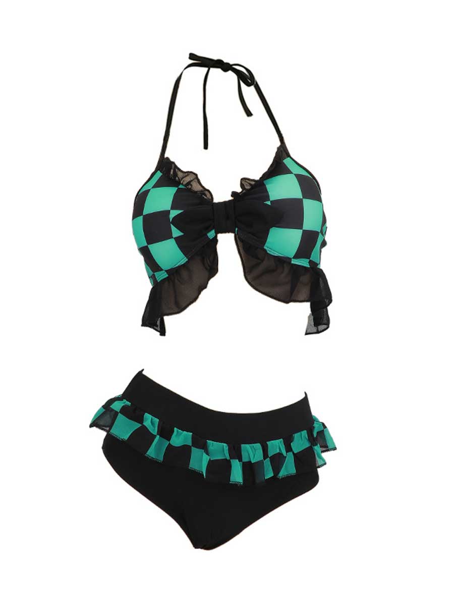 Design: This japanese Anime 2 Piece Bikini Set features bikini top with padded cups, triangle cups with a tie back closure, and matching high waisted bottoms with a cheeky cut back.