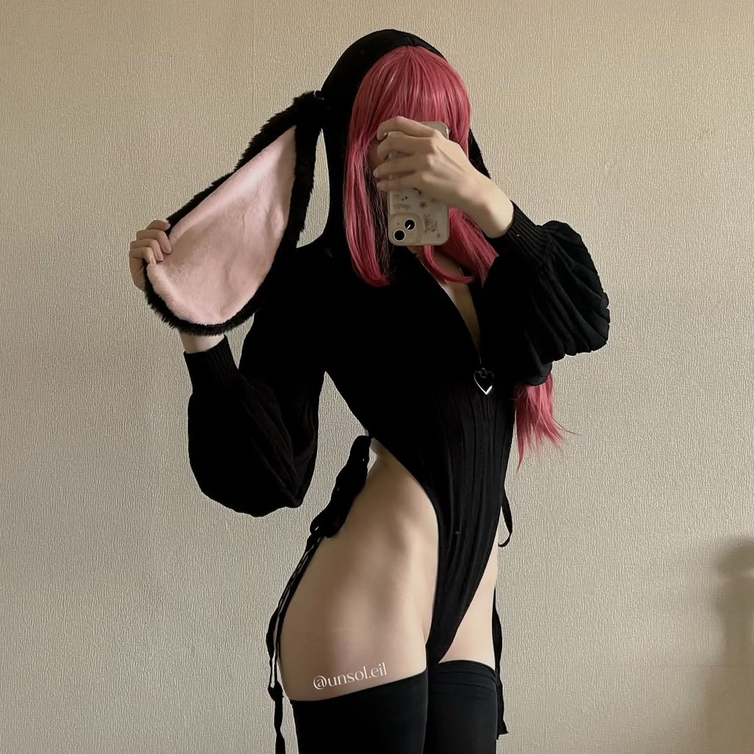 Chic Bunny Ear Hoodie Bodysuit for sale