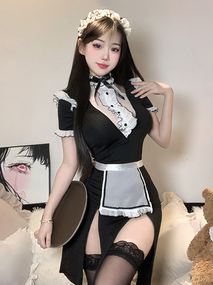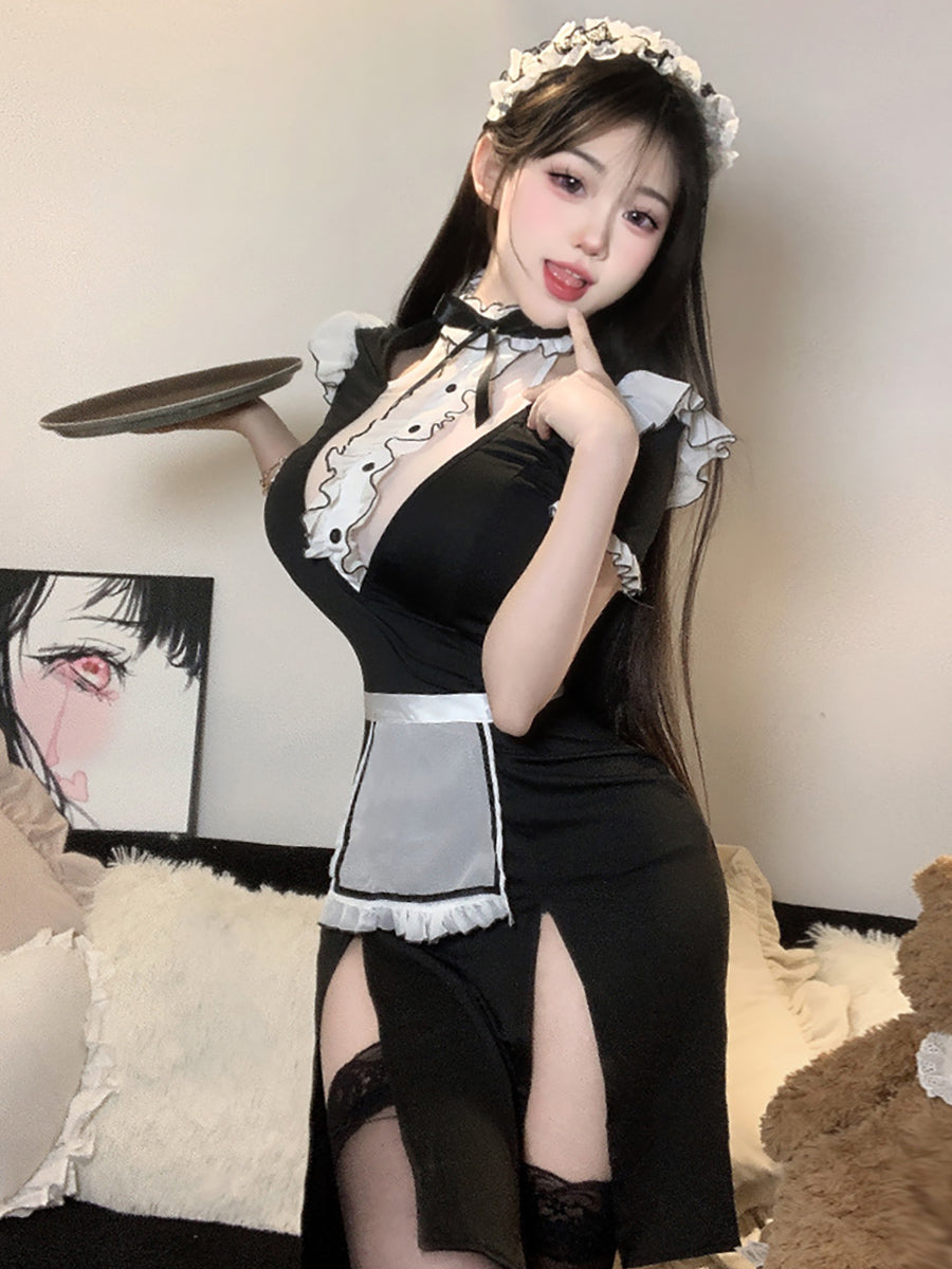 French Maid High Slit Dress