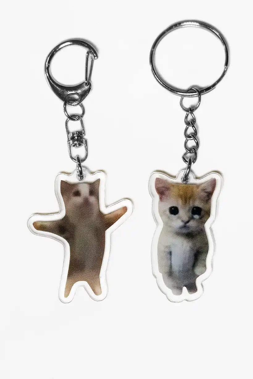 Limited Edition TikTok trend meme Y2K double sided acrylic Happy Cat and El Gato Cat keychains!