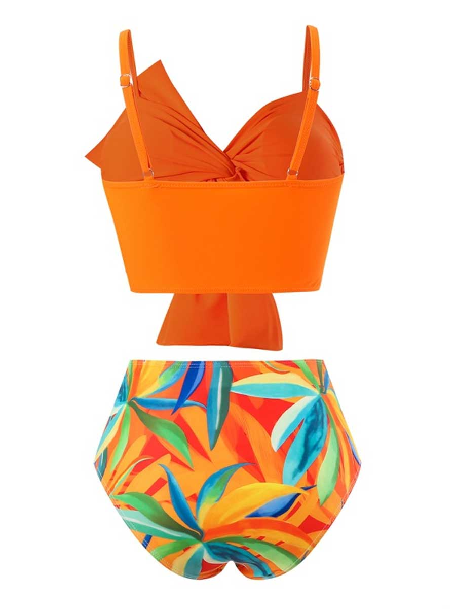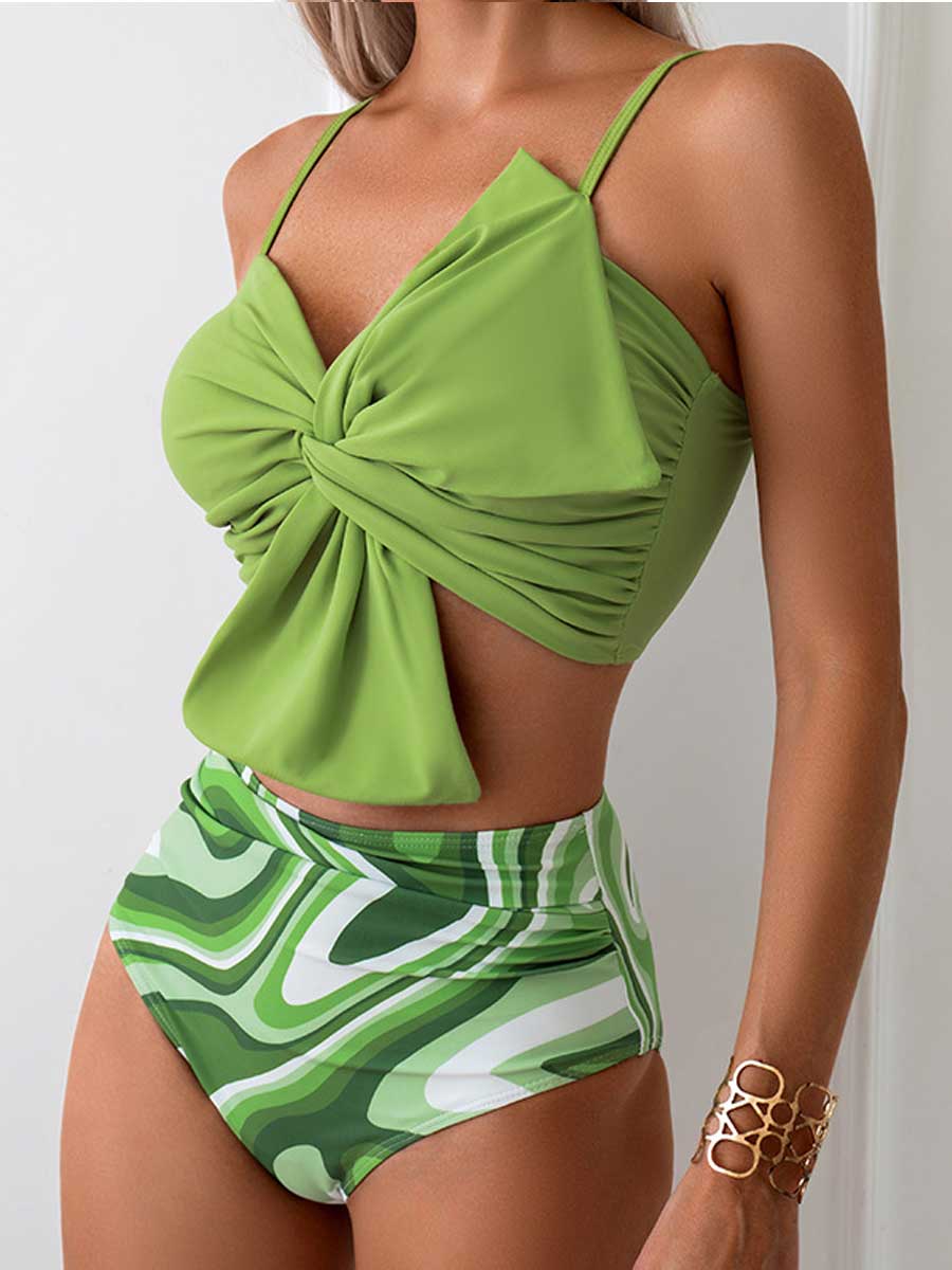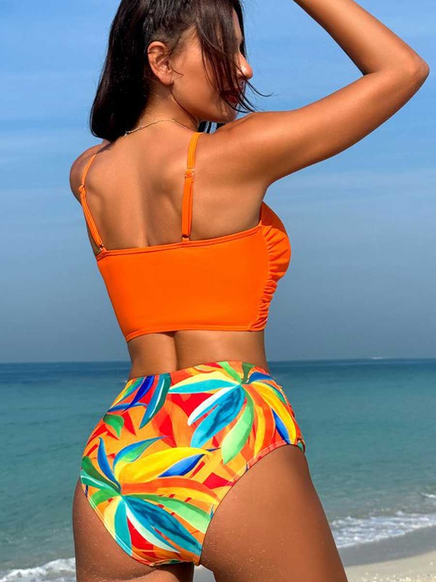 Design: 2 Piece Bikini Set: They have a longline bikini top, features soft padded cups, large bow on the front, adjustable spaghetti straps, and has drawstring tie detail. With high waisted bikini bottom featuring an allover 3D print, and a cheeky cut back.
