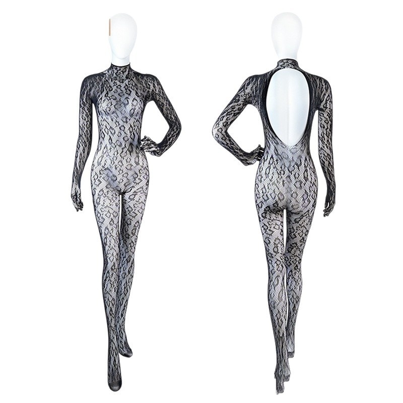 Night Sexy Lingerie Sexy See-through Leopard Print One-piece Stockings