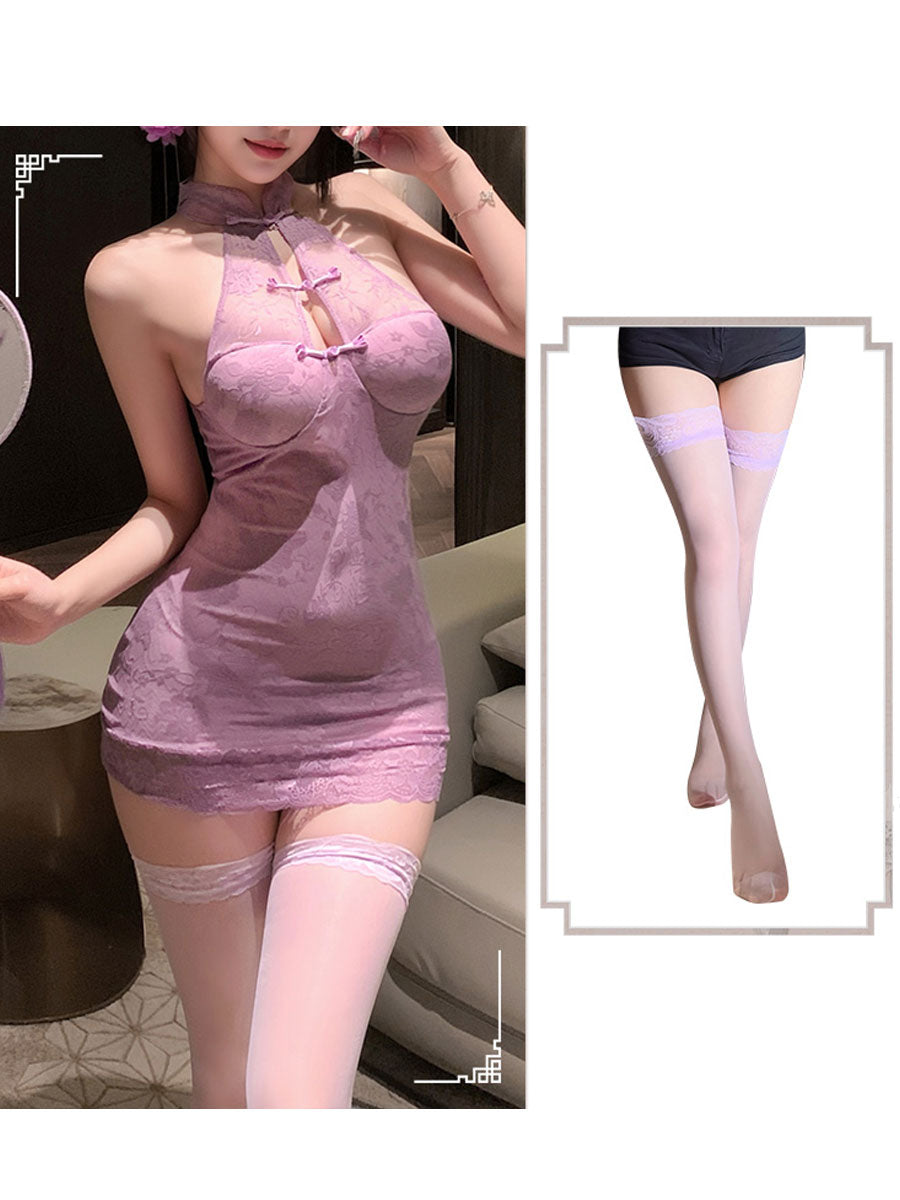 Package Including: 1* Cheongsam Lingerie+1* Panty+1 pair of Stocking