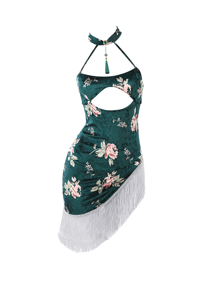 Asymmetrical Tassel Velvet Cheongsam