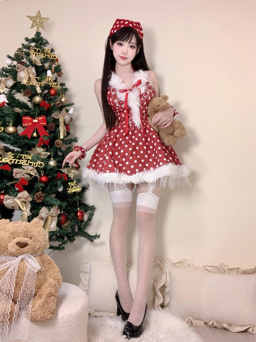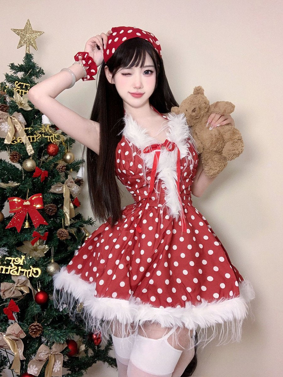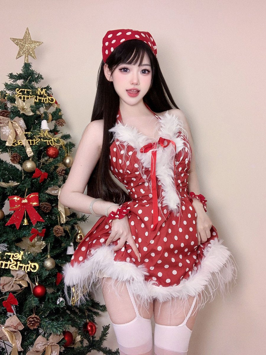 Design: This Sexy Santa Claus Costume features a red halter mini dress, white furry trim, an allover polka dots print, and a matching a red bandana with white polka dots. This costume is sure to make you stand out from the crowd. The material is soft and comfortable, and the details make this costume look festive and stylish.