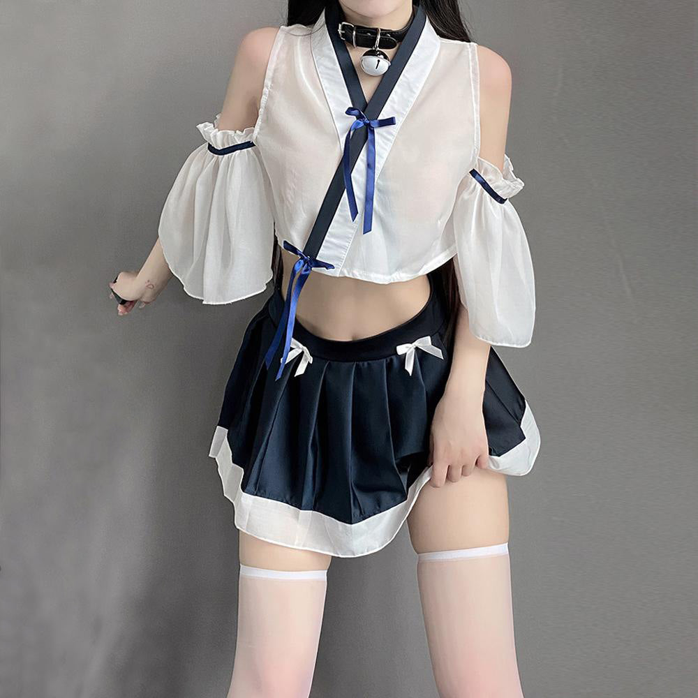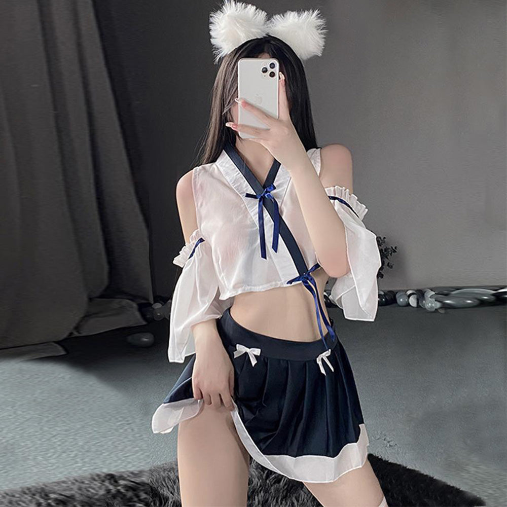 Sexy Japanese Kimono Shrine Maiden Anime Costume Vintage Transparent Lingerie Set