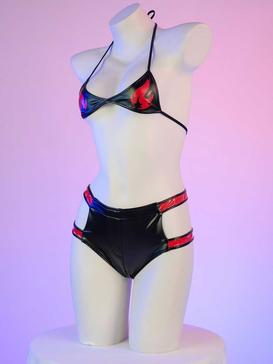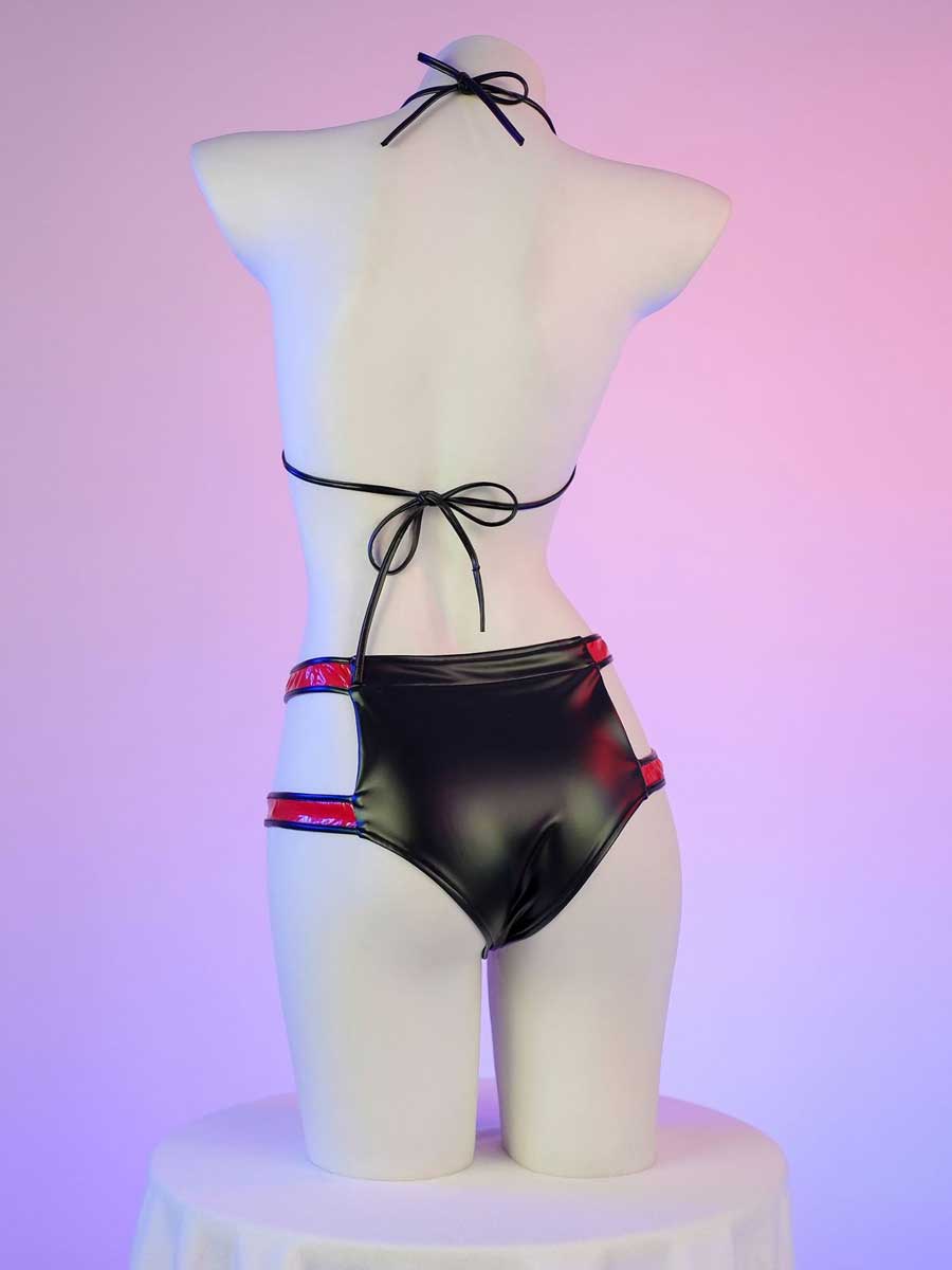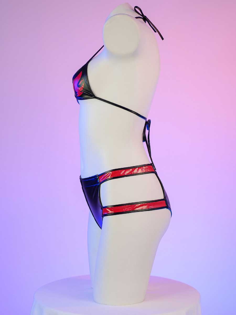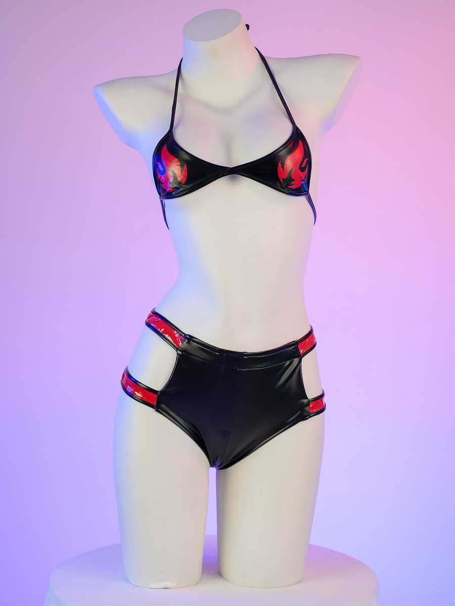 - Micro bikini suit featuring a bikini top with slim triangle cups, halter straps, a tie back closure, and a matching bottoms with sides double strappy design. The Anime ninja costume is as the main theme for this cosplay lingerie to make you more sexy and cute.