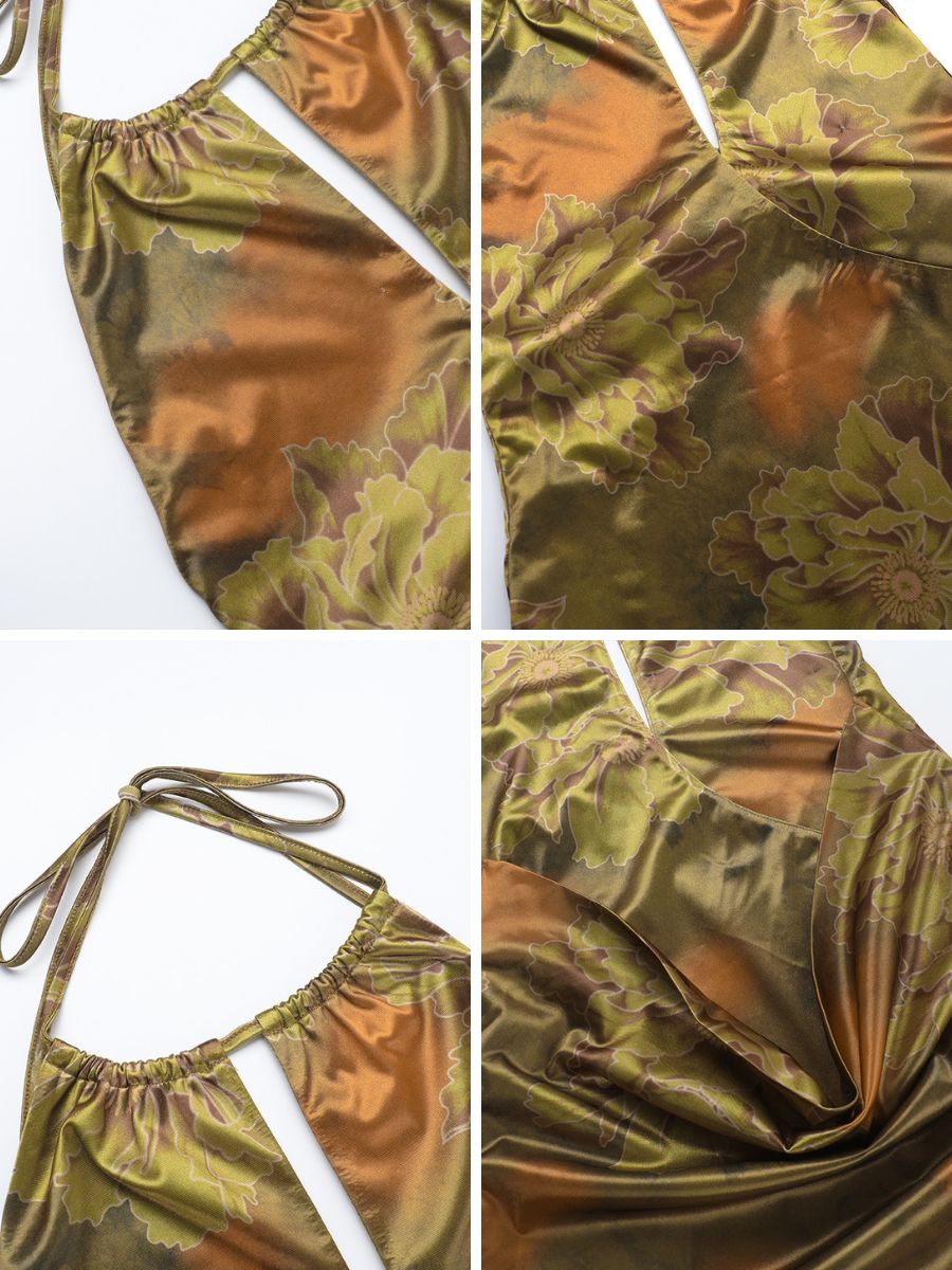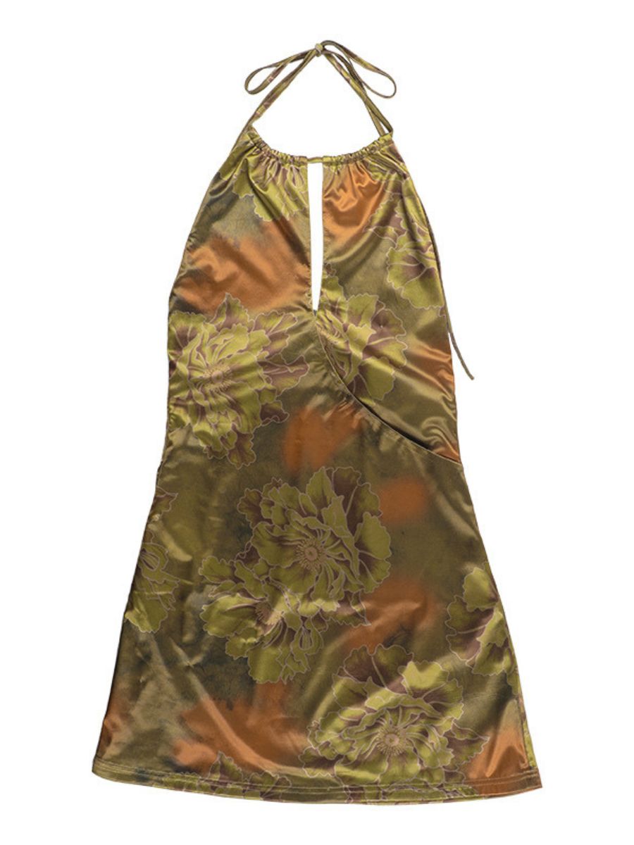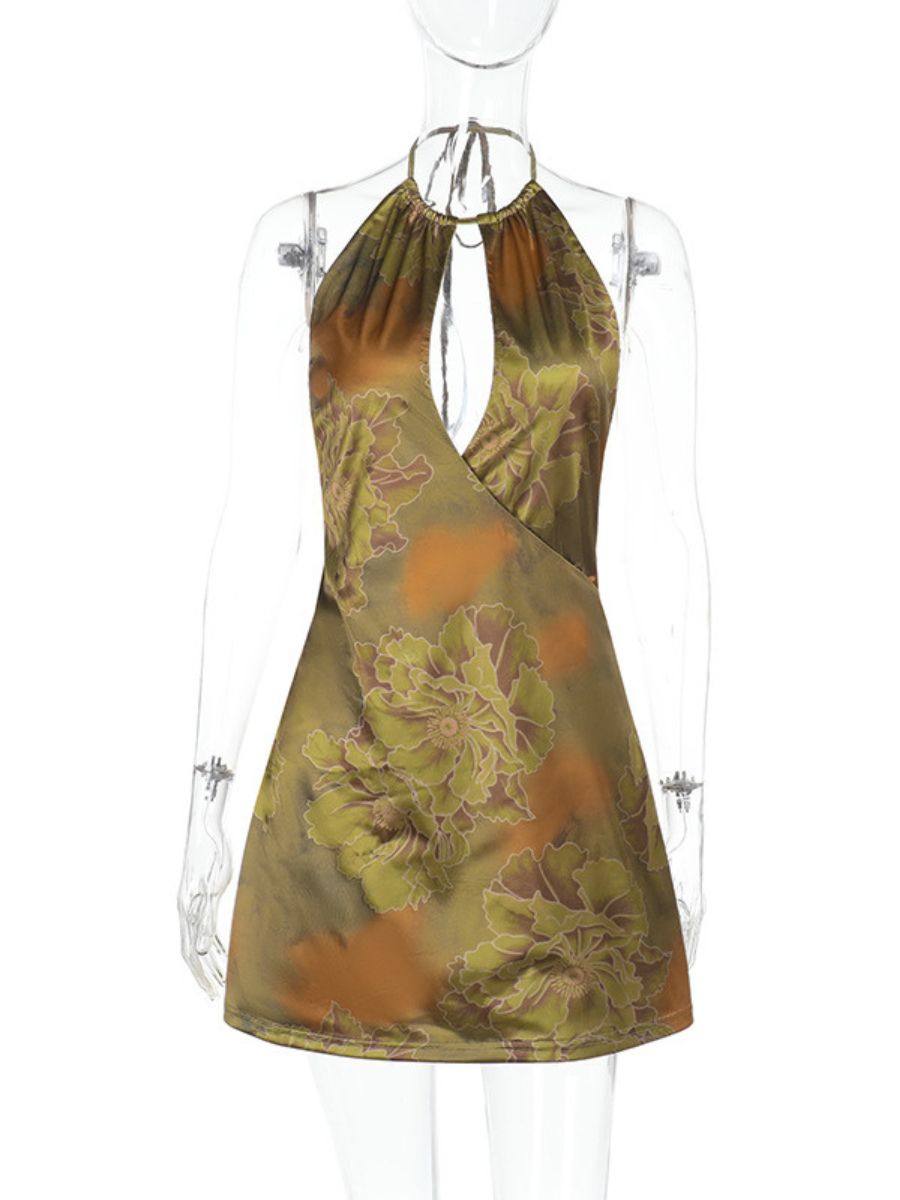 Floral Print Backless Party Dress