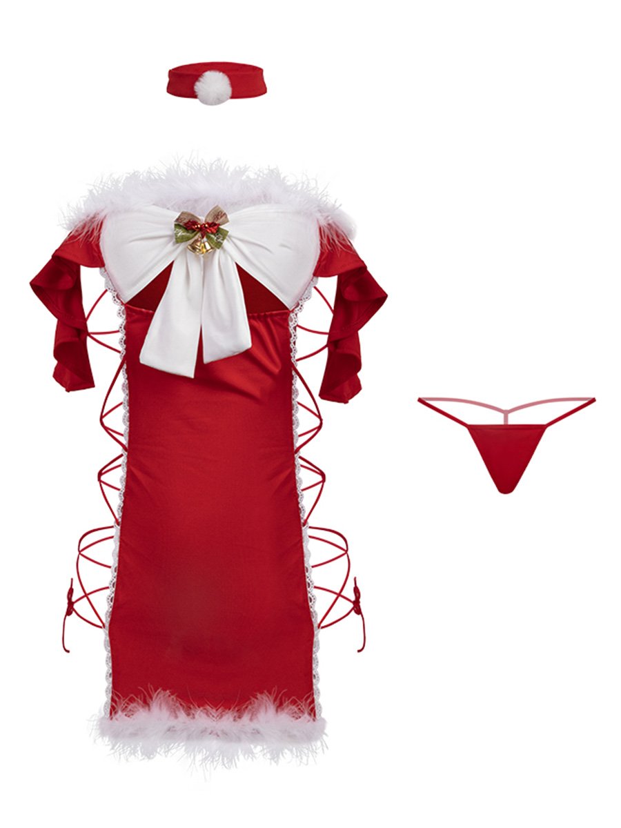 Off Shoulder Lace Up Santa Dress