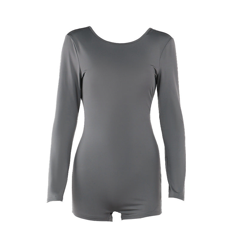 Slim Fit Backless Long Sleeve Shorts Jumpsuit For Women