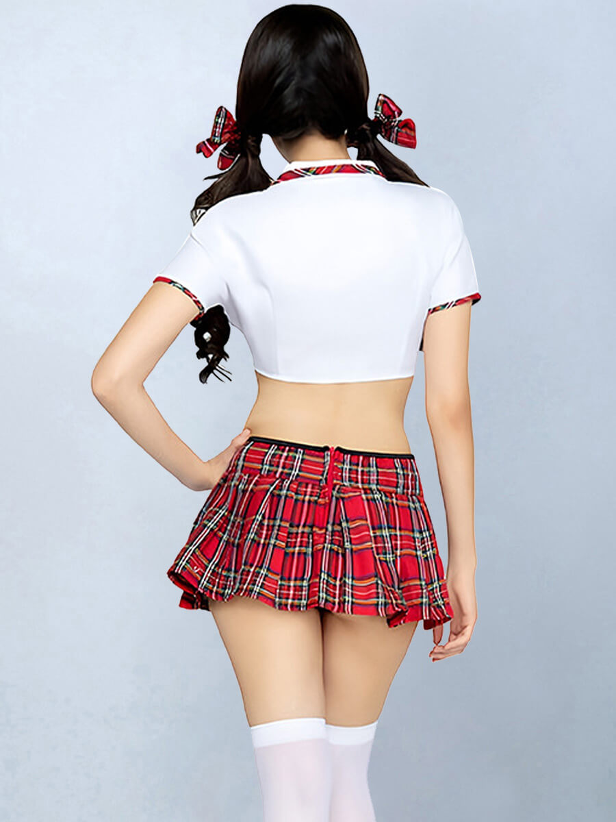 Design: Sexy cosplay lingerie for women, Anime underwear: With a white crop top with a front tie closure and a high waisted plaid skirt: looks a little big cool and a little fashion.