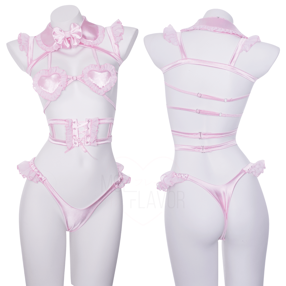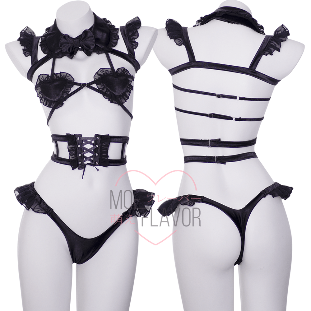 - Set includes: Collar • Top • Shoulder Strap • Waist Piece • Underwear