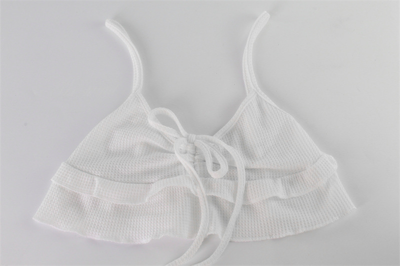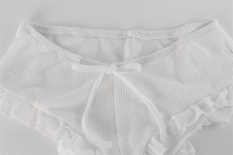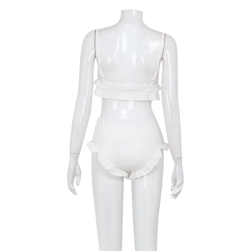 Women's Pure White Suspender Underwear Ruffled Shorts Suit
