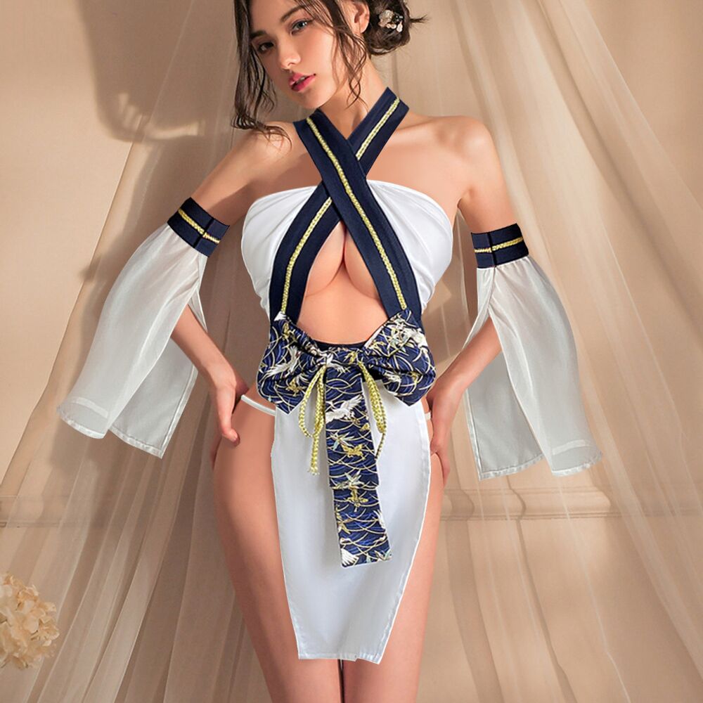 Yomorio Sexy Kimono Lingerie Costume Japanese Anime Cosplay Underwear 4 Pieces Roleplay Outfits